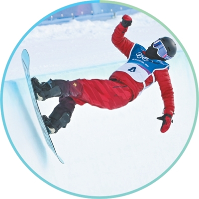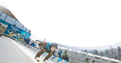 中國隊通順員蔡雪桐在單板滑雪女子U型場面手段經驗賽中。 本報記者 王 亮攝