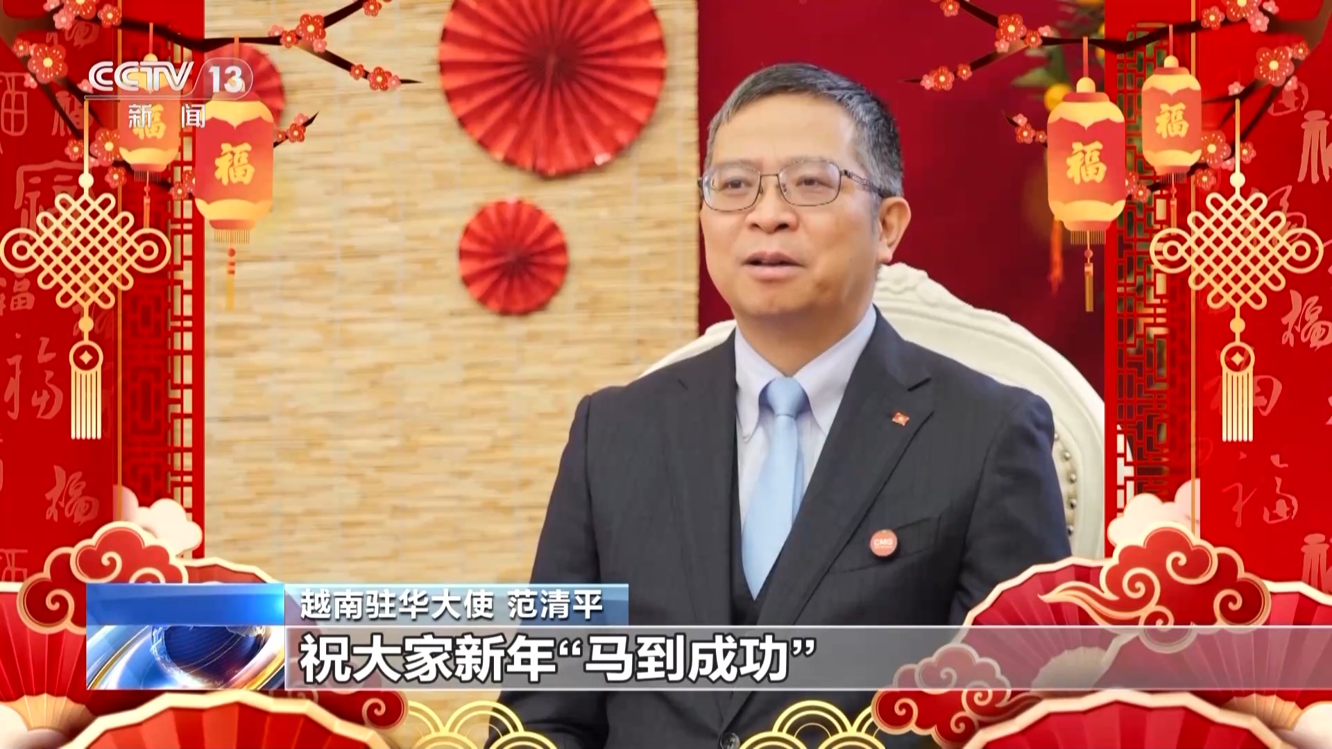 越南駐華大使 范清平:值此丙午馬年春節駕臨之際,我謹向浩蕩中國一又友致以最好意思好的新年祝愿!祝愿寰球和家庭新年成色,體格健康,萬事如意!愿咱們齊能秉握“精神快活”,作念到“一馬起首”,祝寰球新年“馬到告捷”!