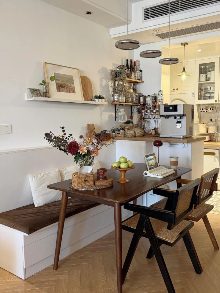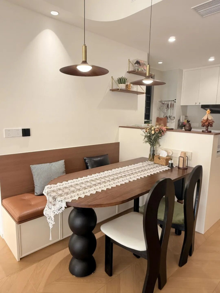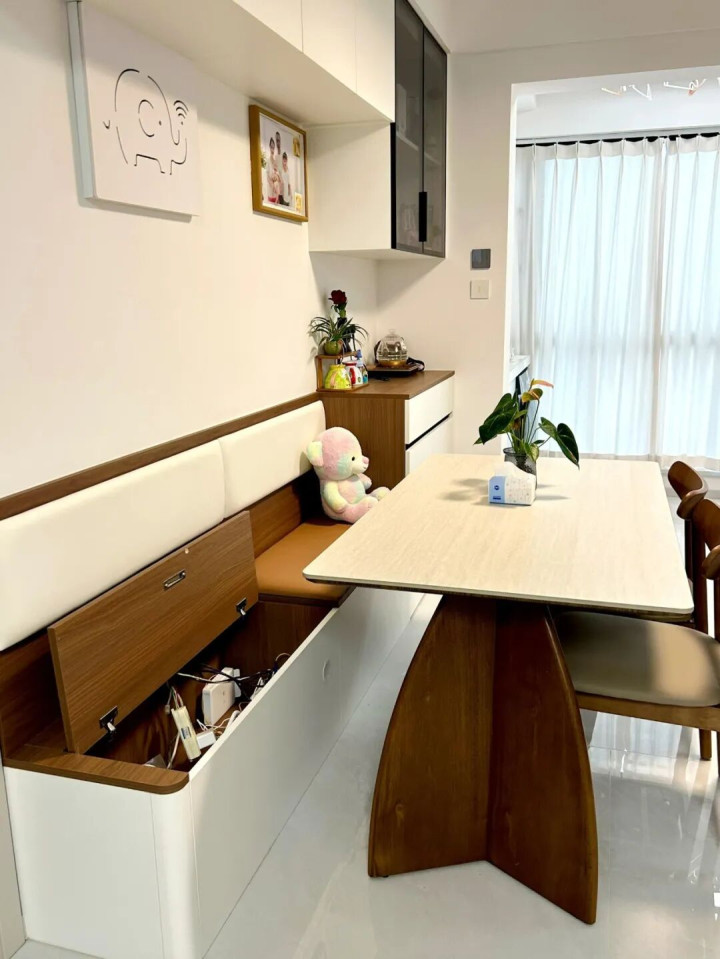 這少許確實(shí)太實(shí)用了,卡座下方不錯(cuò)作念成收納柜,曩昔家里的餐具、雜物齊能塞進(jìn)去,收放齊特地寬心,餐廳再也不會(huì)亂糟糟的了。