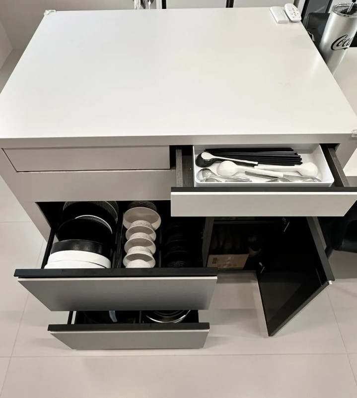 自帶電源的打算,曩昔吃暖鍋、用微波爐、榨汁機(jī),齊無用特別接線,特地淺易,悠閑的時(shí)候,還能當(dāng)成吧臺(tái),喝杯小酒、泡杯茶,氛圍感徑直拉滿。