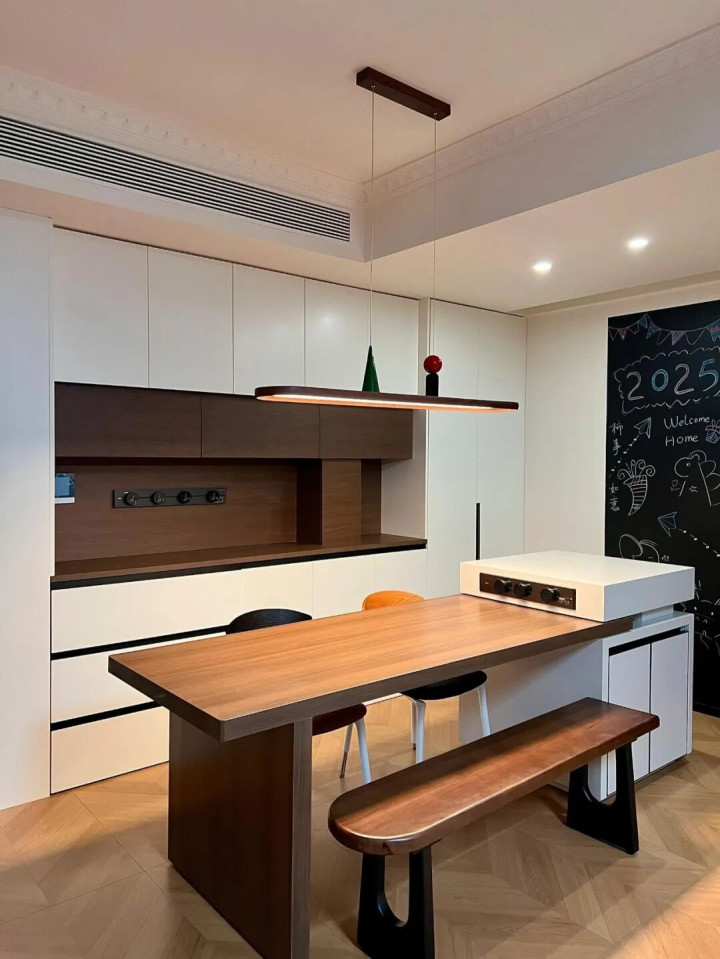 如果家里是大戶型,廚房和餐廳銜接,那浙江東說念主流行的島臺(tái)餐桌,十足比長(zhǎng)餐桌香!既表層次,又純真實(shí)用。