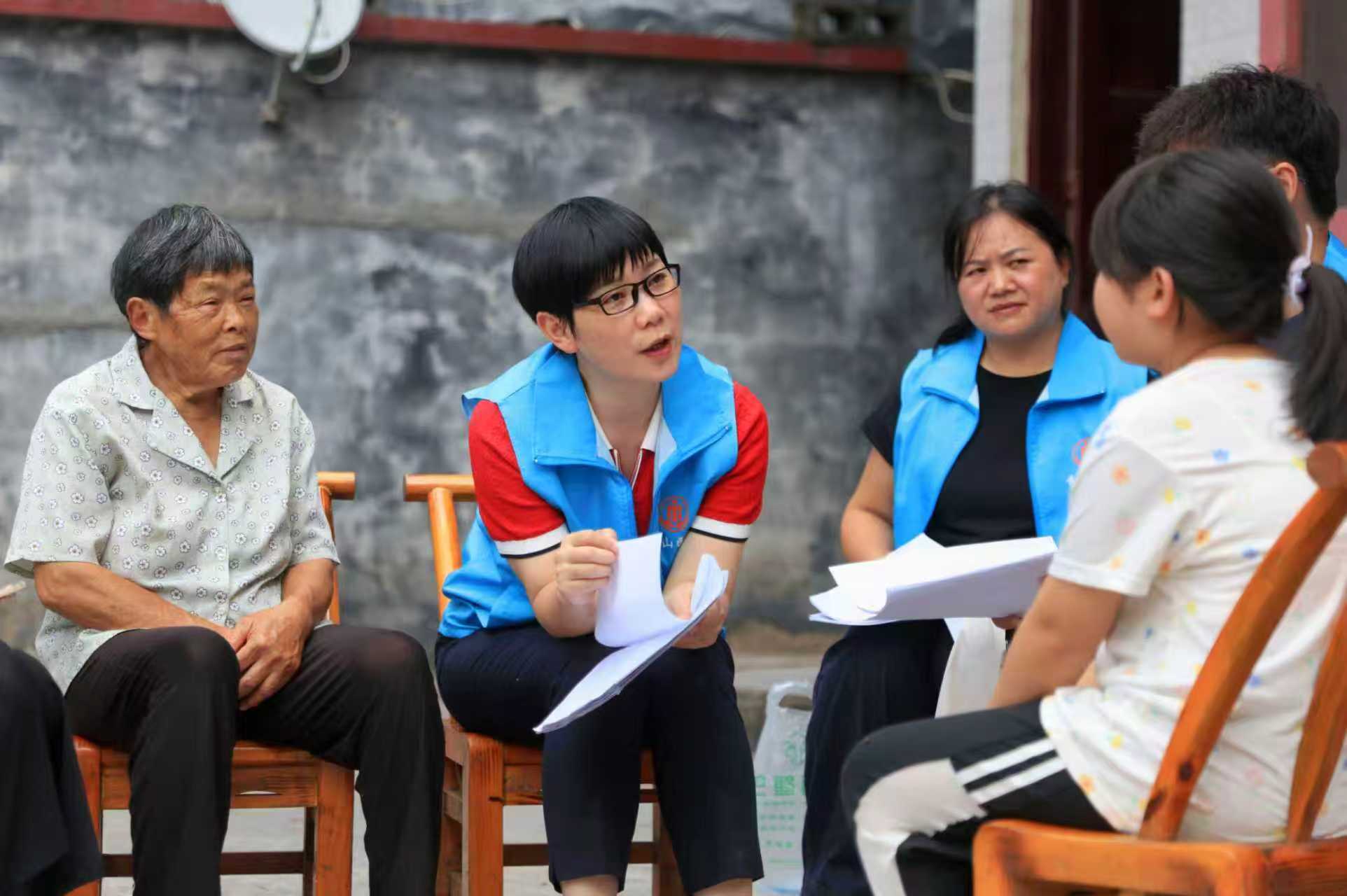 “邊城護苗”樣子為清溪場街談逆境兒童家庭送去育兒指導。秀山縣民政局供圖