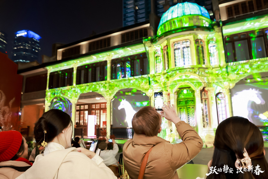 華燈初上,行程的終末一站來到滬上石庫門文化地標——張園。行為靜安文旅商體展歸攏發展的中樞載體,這里以IP為核、科技為翼,打造出極具招引力的文化破鈔場景。外洋友東談主們通過VR千里浸式不雅影,穿越回1995年的上海小巷,在光影中觸摸城市馳念與新春情感;隨后,以徐悲鴻奔馬IP為中樞的光影秀在百年締造立面上秀氣演出,當代數字藝術與經典國畫境界交相襯映,駿馬騰踴、光影流轉,既彰顯了馬年生肖文化的活力,也讓張園的歷史底蘊與當代潮水完好歸攏。