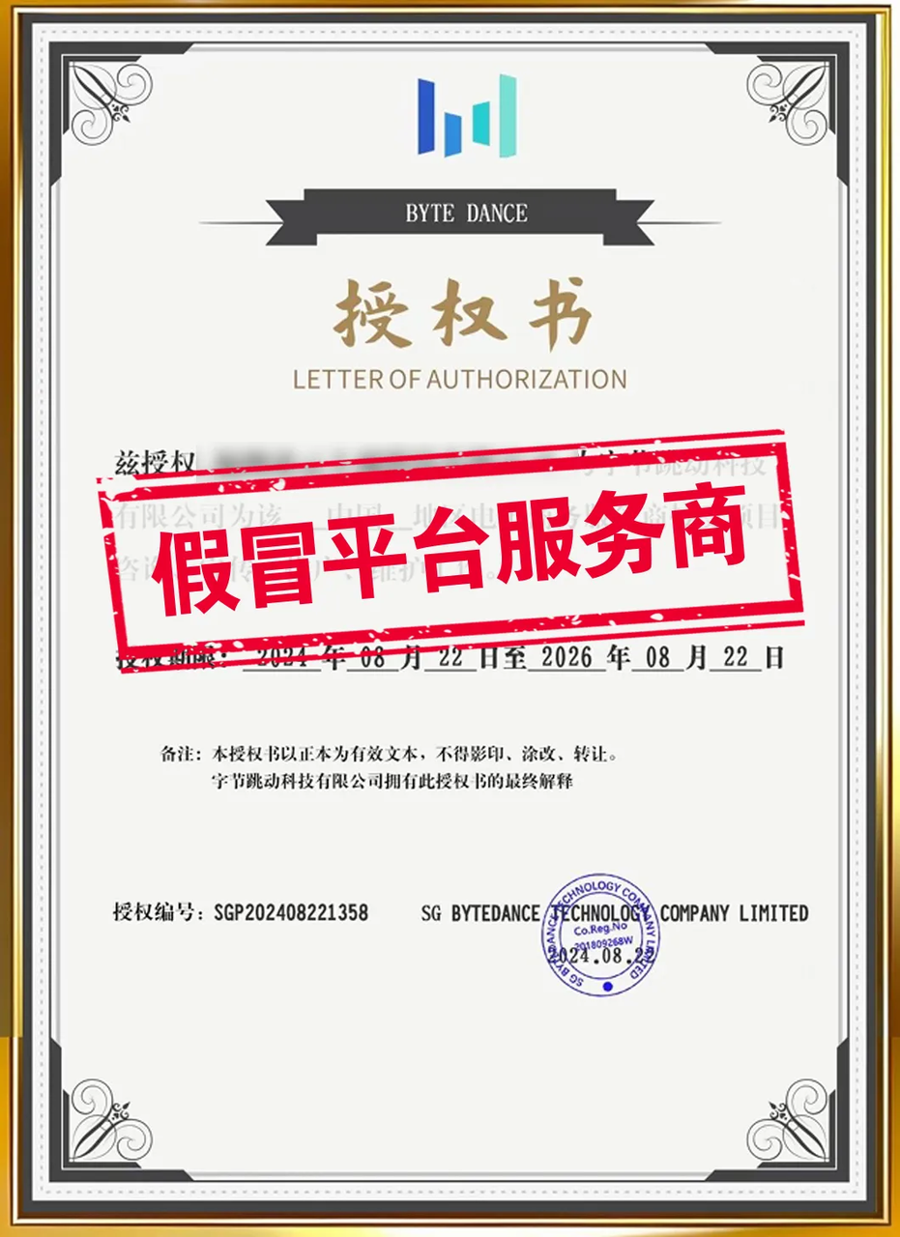 外部機構(gòu)假冒TikTok Shop平臺處事商