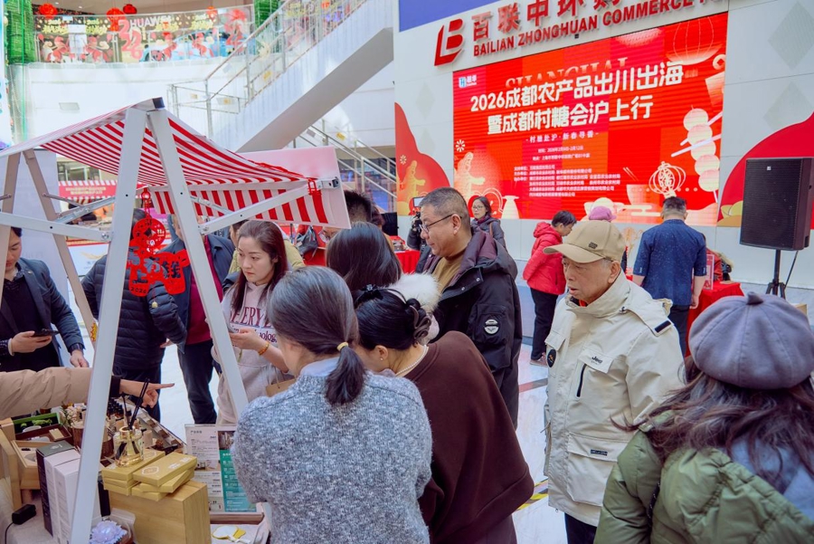 馬年春節,反向過年。寰球旅客來到上海,寰球厚味也到上海過大年。就在這兩天,“2026成王人農居品出川出海暨成王人村糖會滬上行”在百聯中環購物廣場紅火開張。算作“蓉品出川”的伏擊一步,這場年味商場將成王人的鄉土風姿與習慣暖意帶到了上海,讓市民無需遠赴四川,就能逛吃玩購,體驗原汁原味的成王人村糖大集。