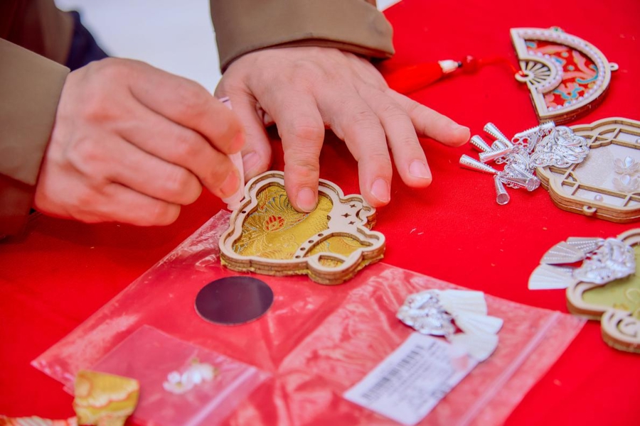 不啻吃,這里還能玩起來、帶回家。糖畫、吹糖東談主攤位前老是圍滿大小一又友,敦厚傅手把手教,一根糖絲勾出年年多余;川劇臉譜彩繪、蜀繡雪柜貼DIY、古法香包制作……親手作念一份,年禮也有了溫度。每天定點的長嘴壺茶藝飾演,配上現場沖泡的蒲江雀舌、邛崍黑茶,茶香褭褭,眨眼間仿佛坐在成王人的老茶室。