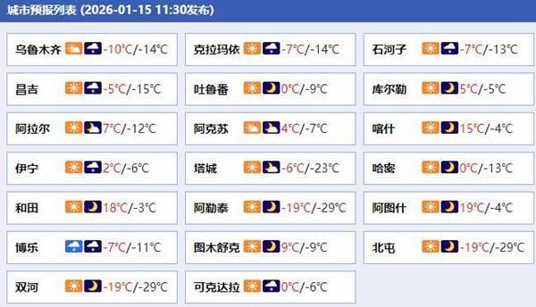 今天新疆各城市預(yù)告。(起首:中國天氣網(wǎng))