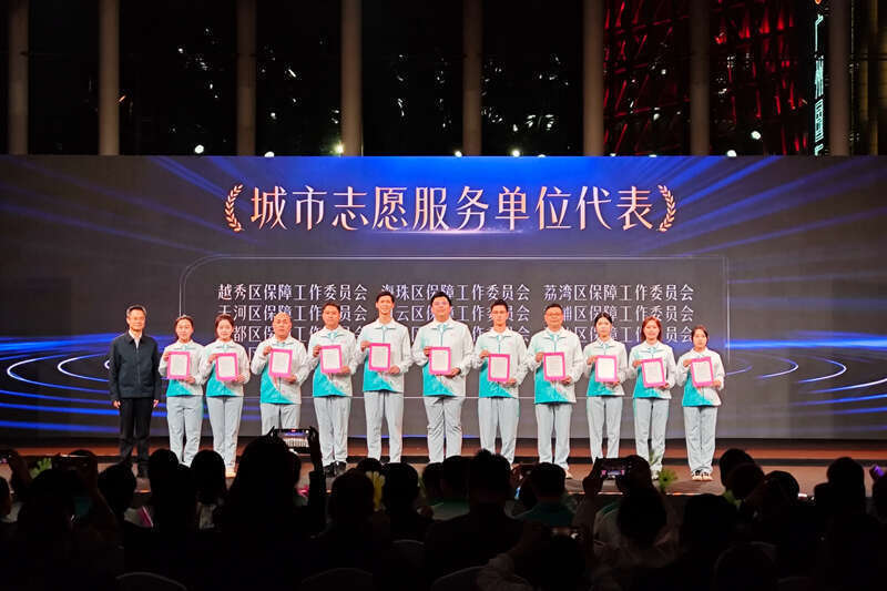 現場,主理方為志愿者代表頒發了賽會志愿者職業文憑、感謝信及城市志愿職業感謝信,以此見證廣州市47所高校1.3萬余名賽會志愿者超110萬小時的職業付出,以及1.8萬名城市志愿者的沉默奉獻。